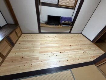 2. 床の張り替え: お客様が気にされていた「床のふわふわ感」を解消するため、新しいフローリング材にすべて張り替える工事を行いました。見た目もきれいになり、歩くたびに安心感を感じていただけることと思います。