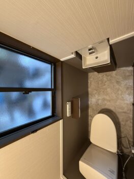 手洗い場や内装も含めてトータルで一新した事例です。